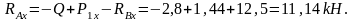 P1x = P1sin() = P1sin(14) = 60,24 = 1,44 (кН),