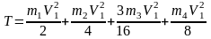Кинетическая энергия всей механической системы определяется по формуле (3) с учетом (4), (8), (13), (15):