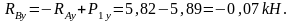P1y = P1cos() = P1cos(14) = 60,97 = 5,82 (кН).