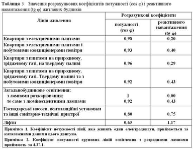 - удельная нагрузка электроприемников квартир, принимаемая по табл.2.1. в зависимости от количества квартир, присоединенных к линии (вводу ТП), типа кухонных плит и общей площади квартир.