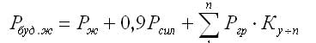 Расчетная нагрузка жилого дома в целом (от жилья, силовых электроприемников и встроенных или пристроенных помещений) из условия, когда наибольшей составляющей является нагрузка от жилья, Рбуд.ж определяют по формуле:
