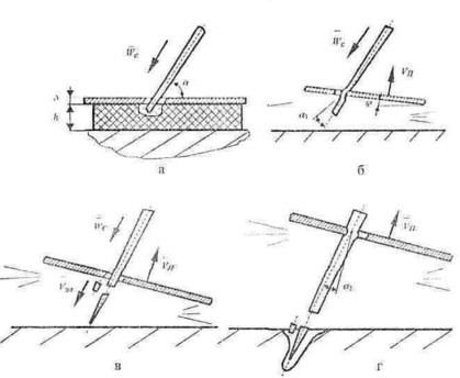 7-й этап — взаимодействие пластины ЭДЗ и КС, в результате которого осуществляется взаимное влияние движущихся тел, сказывающееся на изменении направления и скорости движения струи и пластины. Этап заканчивается в момент прекращения контакта КС с пластиной ЭДЗ (рис. 1, б);