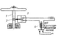 При изменении указанных параметров приводятся в действие датчики, связанные с исполнительными механизмами включения или выключения магнитного пускателя, соединяющего или размыкающего линию электропитания двигателя насоса. В качестве датчиков применяют различные реле уровня воды (рис. 1), регуляторы давления или электроконтактные манометры, струйные реле (рис. 2). Реле уровня, например поплавковое типа РЛ1-51, в зависимости от верхнего или нижнего положении уровня воды в баке включает или выключает контакты электроцепи двигателя. Чувствительным элементом является поплавок, соединенный с тросом, перекинутым через блок; на другом конце троса прикреплен контргруз. Контактное устройство реле представляет собой пружинный переключатель мгновенного действия с нормально открытым и нормально закрытым ртутными контактами. Контактное реле надежно работает даже в помещениях с повышенной влажностью. Дополнительные встроенные контакты могут соединять цепи звуковой или световой сигнализации.