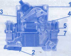 Вимикачі забезпечені двома типами захисту: тепловим - для захисту від тривалих струмових перевантажень, виконані на біметалічній пластині «3» і електромагнітним - для захисту від струмів короткого замикання, виконаним на електромагнітній котушці «4».