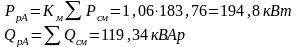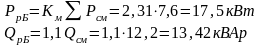 Рассчитаем, средние максимальные, активные и реактивные мощности: