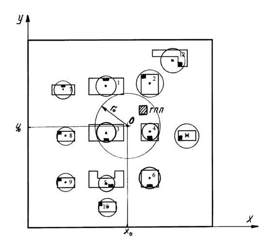 ГПП должна находится в пределах окружности радиуса r0 с центром в точке О(73;72).