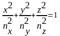 головними показниками заломлення і дорівнюють головним осям еліпсоїда уздовж напрямків x, y, z. Цей еліпсоїд визначає поверхню постійної щільності енергії і називається еліпсоїдом показників заломлення (рис 3), для якого виконується рівняння