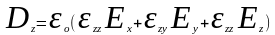 Елементи в (2) характеризують анізотропне діелектричне середовище і складають тензор діелектричної проникності. Аналогічні співвідношення можна навести для векторів