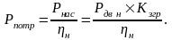Значення Рпотр визначається по номінальній потужності двигуна Рдв н, його коефіцієнту завантаження й КПД