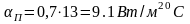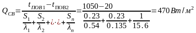Коэффициенты теплопроводности материалов при этой температуре (табл. 1): шамот λ1=0,54 Вт/м2∙0С, пенодиатомит λ2=0,135 Вт/м2∙0С. Принимаем, что внешняя поверхность печи окрашена обычной краской и при tв=700С,