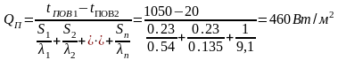 Принимаем температуру на внешней поверхности боковых и задних стенок футеровки максимально допустимой tв=70°С. Перепад температуры в футеровке Δt=tn-tв= 1050-70=980°С.