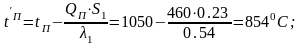 Температура на границе огнеупорного и теплоизоляционного слоёв:
