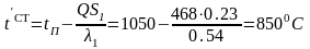 tсрш =(tп+tсл)/2=(1050+785)/2=918оС