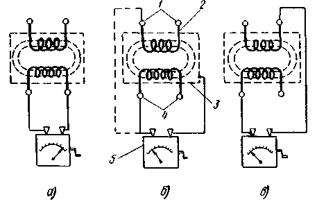 По схеме, приведенной на рис. 1 а, проверяют вторичные обмотки трансформатора, чтобы убедиться в том, что они не имеют обрыва.