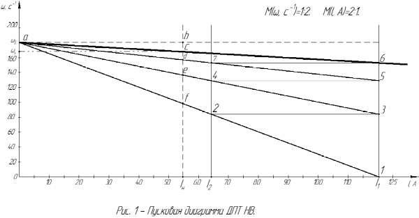 Строим электродинамические характеристики двигателя на всех участках и определяем значение скоростей вращения в точках переключения реостата (рис. 1 и рис. 2).