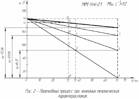 Время перехода от одной скорости вращения к другой, при динамическом моменте – описываемом линейной функцией
