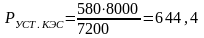 Принимаем выработку электрической энергии на ТЭЦ и КЭС одинаковой, тогда установленная мощность КЭС определяется по следующей формуле: