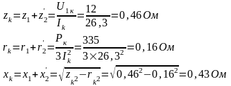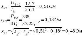 Определим полное zк, активное xк и реактивное rк сопротивление в режиме короткого замыкания.