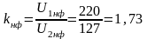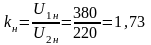1.2 Определим коэффициент трансформации фазных и линейных напряжений.