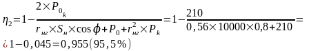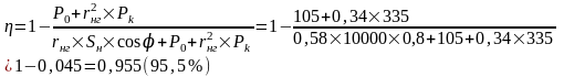 4.1 Формула для расчета к.п.д. трансформатора η имеет вид: