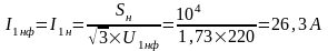 1.1 Определим линейные и фазные значения номинального тока на стороне: