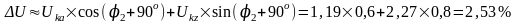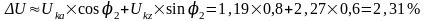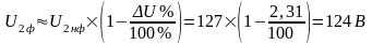 5 Вычислим процентное изменение вторичного напряжения U% при номинальной нагрузке:
