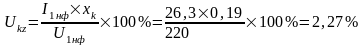 При соединении первичной обмотки в звезду параметры короткого замыкания на одну фазу будут следующие: