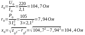 Определим полное z0, активное x0 и реактивное r0 сопротивление в режиме холостого хода. Для первичной обмотки соединенной в звезду на одну фазу будут следующие: