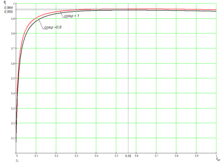 Р ис. 2 График зависимости к.п.д. η от коэффициента нагрузки rнг.