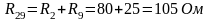 R11 = R1 + R2 + R3 =90+80+80 = 250 Ом
