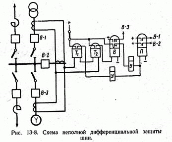 Рис. 3 Схема неполной дифференциальной защиты шин