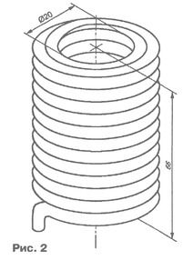 Дроссель L5 — 27 витков медного провода диаметром 4 мм в эмалевой изоляции, намотанных в два слоя без каркаса. Эскиз конструкции этого дросселя изображен на рис. 2.