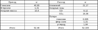 Проводится для определения производительности электролизера и расхода сырья на производство алюминия. Исходными данными является сила тока, выход по току и расходные нормы по сырьевым материалам и анодной массе.