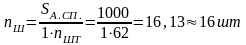 Определяем количество медных шинок приходящихся на 1 штырь, если сечение одной шинки 1см2