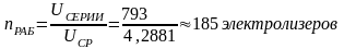 Число работающих электролизеров определяется UСР и UПРЕОБРАЗОВАТЕЛЯ. Для серии электролизеров выпрямительный агрегат имеет U = 850 в. Учитываются потери напряжения в шинопроводах подстанции, принимаем 1%. Резерв напряжения при снижении I при анодном эффекте принимаем 40 в. Резерв напряжения для компенсации колебаний напряжения во внешней электросети 1%. При этом напряжение серии составит: