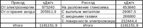 QПРИХ = QСГОР. АНОДА + QЭЛ = 205911,9 + 975240 = 1181151,9 кДж/ч