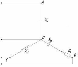 220 В включен звездой несимметричный приемник, сопротивления которого равны: Xca=6 Ом;