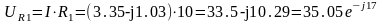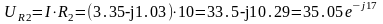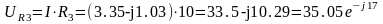 Рассчитываем комплексные значения напряжений на элементах цепи в показательной и алгебраической формах: