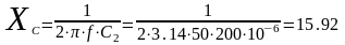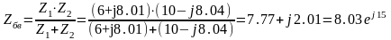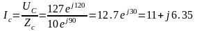 Определяем комплексное действующее значение на разветвленном участке цепи: