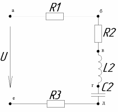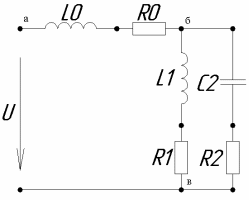 Рассчитать электрическую цепь синусоидального тока со смешанным соединением приемников, схема которой изображена на рис. 2. Дано: U = 380 B, L0 = 19 мГн, R0 = 8 Oм, L1 = 25,5 мГн, R1 = 6 Oм, R2 = 10 Oм, С2 = 396 мкФ.