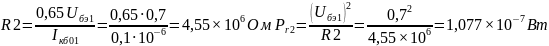 Рассчитываем сопротивление резистора R2 и его мощность, где