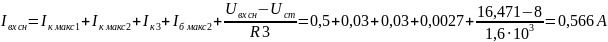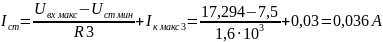 По найденному значению Uст и учитывая, что ток стабилизации VD1 не должен превышать максимально допустимый ток стабилитрона, то есть