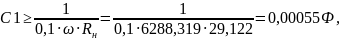 Находим величину емкости конденсатора С1 из условия согласования фильтра с нагрузкой