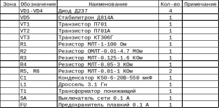 Выбираем тип стабилитрона VD1 и выписываем его параметры
