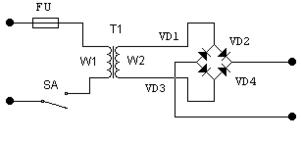 Определяем среднее напряжение на входе выпрямителя – на вторичной обмотке трансформатора: