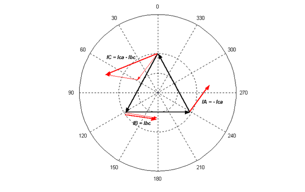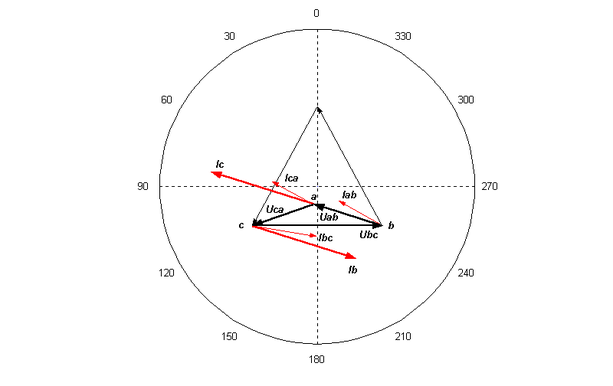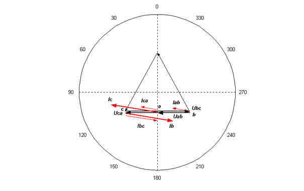 Соединение звезда \ треугольник, симметричная нагрузка: