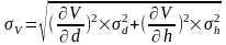 Рассчитаем погрешность при косвенных вычислениях величины V, на основе величин h и d, измеренных микрометром.