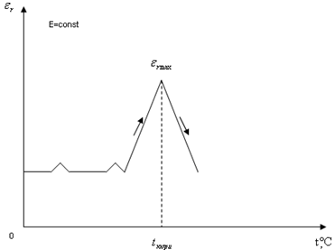В температурной зависимости наблюдается максимум при определенной температуре. Условие максимума диэлектрической проницаемости следующее: время релаксации должно быть равно времени полупериода действующего электрического поля: .