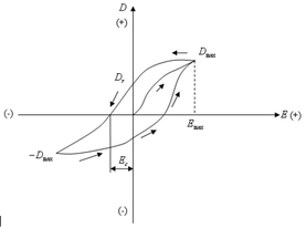 – коэрцитивная сила или значение напряженности электрического поля противоположного направления, необходимого для уменьшения остаточной электрической индукции до нуля.