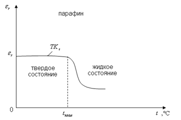 Для данной категории диэлектриков характерны те же закономерности электронной поляризации, что и для неполярных жидких диэлектриков и газов. Для нейтральных твердых диэлектриков будет характерен отрицательный , при достижении температуры плавления будет наблюдаться резкий спад диэлектрической проницаемости (см. рис. 7.23).
